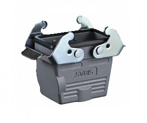 Carcaça Metálica da Série HA com saída superior para travas laterais (2 alavancas). Preparadas exclusivamente para introdução do insertos das Séries HA (32 Pólos) e HD (50 Pólos). Peças injetadas em alumínio proporcionando um invólucro de alta resistência, garantindo robustez contra impactos e esforços mecânicos.