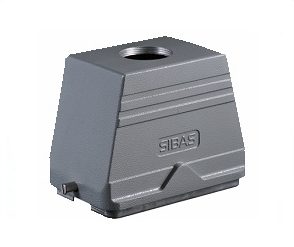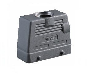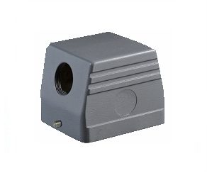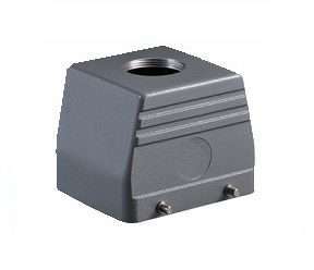 Carcaça Metálica da Série HA com saída superior para trava frontal (1 alavanca). Preparadas exclusivamente para introdução do insertos das Séries HA (16 Pólos) e HD (25 Pólos). Peças injetadas em alumínio proporcionando um invólucro de alta resistência, garantindo robustez contra impactos e esforços mecânicos.