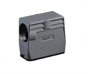 Carcaça Metálica da Série H32B com saída superior para trava frontal (1 alavanca). Preparadas para introdução dos insertos das Séries HE (32 Pólos – 16×2), HEE (64 Pólos – 32×2), HD (80 Pólos – 40×2), HDD (144 Pólos – 72×2) e HSB (12 Pólos – 6×2). Compatível com outros modelos concorrentes encontrados no mercado, aceitando pleno intercâmbio entre eles.