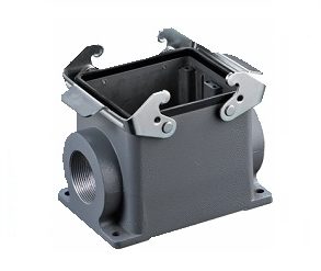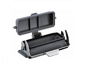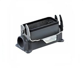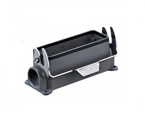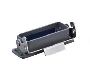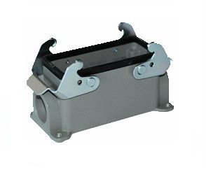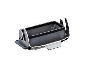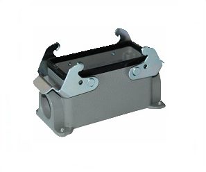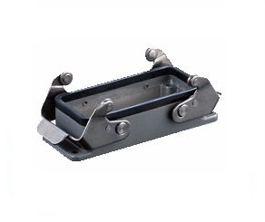 Base Metálica de Embutir da Série H24B com uma trava frontal (1 alavanca) para o fechamento do conjunto. Compatível com as Carcaças H24B e Insertos Macho ou Fêmea das Séries HE (24 Pólos) e HEAV (24 Pólos). Intercambiável com outros produtos concorrentes encontrados no mercado. Peças injetadas em alumínio proporcionando um invólucro de alta resistência, garantindo robustez contra impactos e esforços mecânicos.